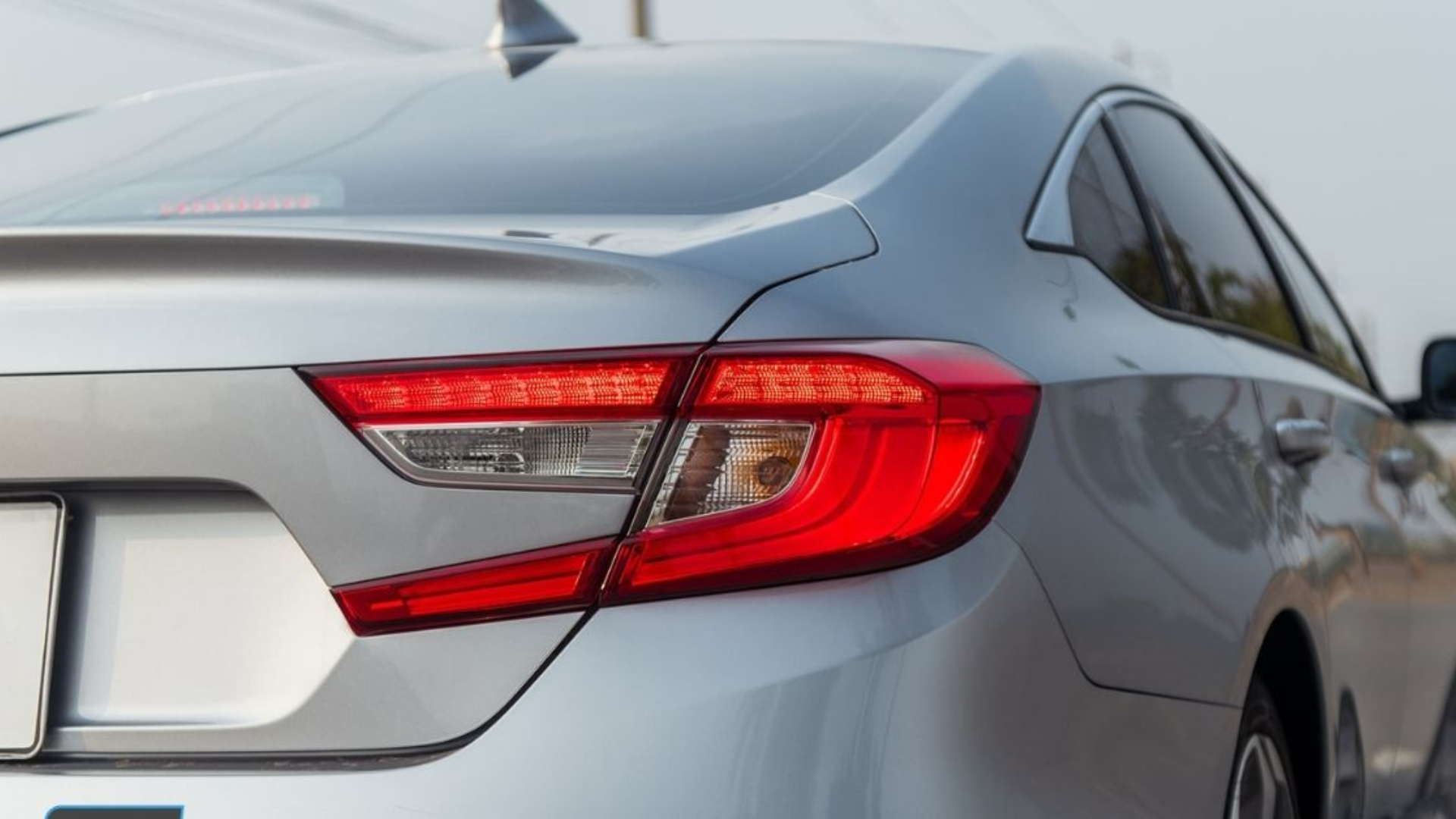 Phần đuôi của Accord được xem là tuyệt tác được tạo ra từ những đường cắt gãy gọn khi có điểm nhấn là những nếp gấp sắc cạnh. Cụm đèn hậu LED đẹp mắt, tạo hình khá giống chữ C, nằm ngang đối xứng khá độc đáo. Ngay bên dưới là cụm ống xả kép hình chữ nhật được phủ crom bóng loáng. Chính giữa vẫn là đặc điểm nhận dạng của Honda với lô-gô chính giữa và đường nét chạy xuyên lô-gô trải qua hai bên cụm đèn hậu.